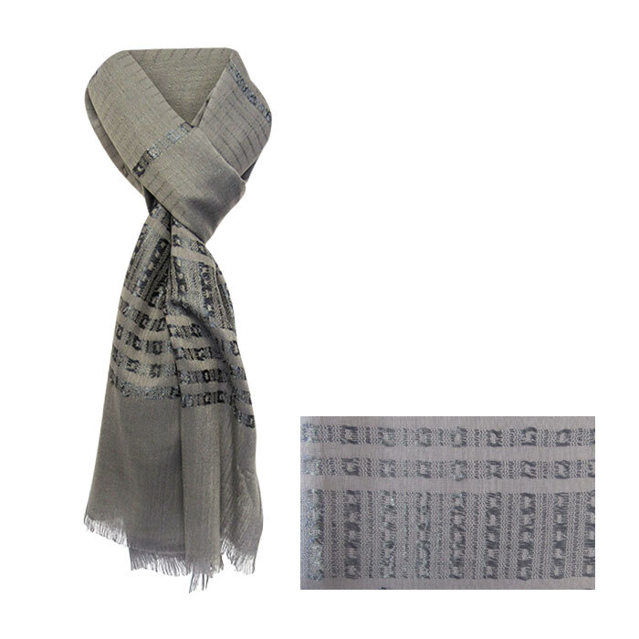 Lightweight chain pewter wrap. 100% polyester. 70 x 180 cm with fringed edge. WAS $8.90, now on Clearance.