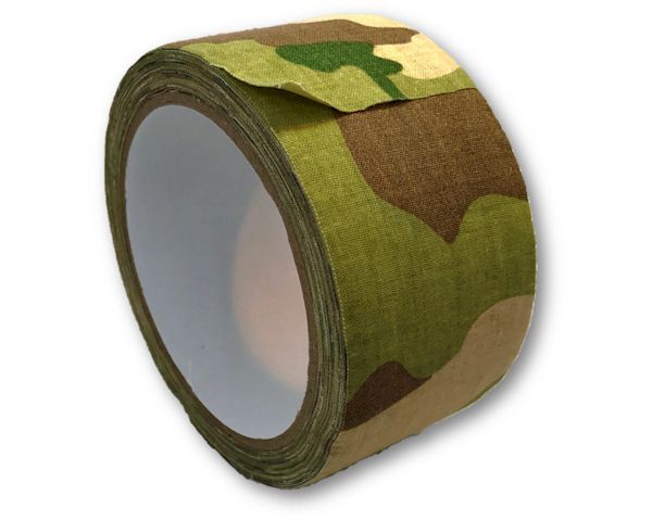Versatile cloth tape in camouflage pattern, 10 metre roll x 5cm, shrinkwrapped and barcoded -