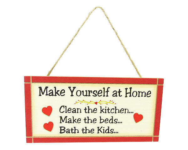 "Make yourself at home" word art. Measures 24 x 12 cm with a rope hanger. Buy the range on E4698ST and save. -